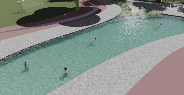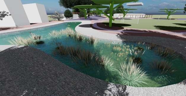 A new layout of components has Since the pool has been moved campus, the three experiences of the main spine of school and form with each other. Passive active zone defined space and the area surrounding spectators. Higher shade coverage and built structures.