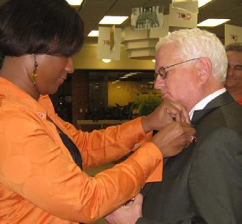 Danny Hooper gets a fnal check of his cap and gown in December from Dr. Shirley Mixon, director of ECU’s Adult Degree Completion Program—Reach Higher. Hooper returned to ECU after 23 years to complete a bachelor of science degree in organizational leadership. He and Melissa L. Layton of Stratford were the frst two graduates of the program which allows adults to complete bachelor’s degrees while working full time.