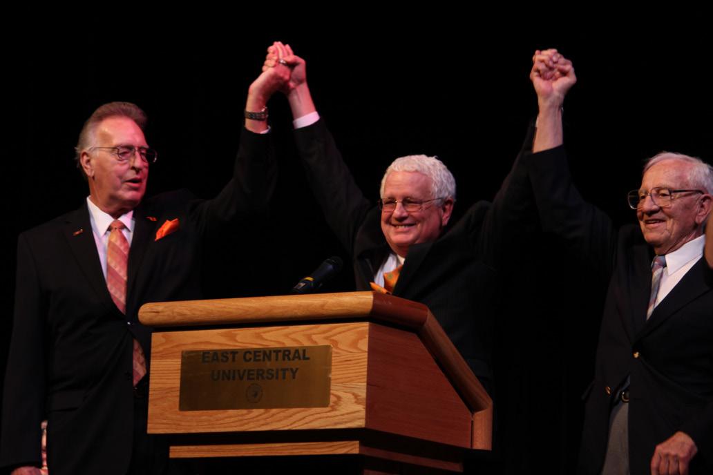 Bill Bridgwater (right photo/center), ECU grad and Alzheimer’s patient and ECU 2009 Outstanding Alum.