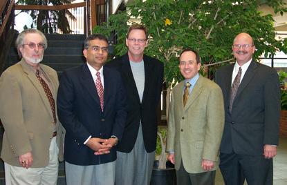 President Hargrave, Dr. Guy Sewell, Dr. Bruce Weems, Dr. Duane C. Anderson, Dr. James Burke and Dr. Scott Barton were among the ECU faculty that were recognized for the Salary Recovery Program efforts which total $25,130. Not pictured: Dr. Patrick Bohan, Dr. Anne Davis and Dr. Steve Fields.
