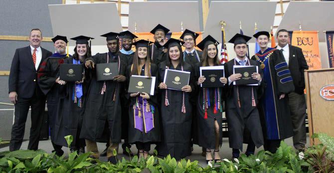 ECU alums Janice Gray and Michael O. Brown addressed graduate candidates during ECU’s 2018 Spring Commencement Exercises on May 12 at the Kerr Activities Center. Bachelor’s degrees were conferred to 431 students while 131 more achieved master’s degrees. Janice and her busband established their own CPA frm in Norman while Brown is a qualifying and life member of the Million Dollar Round Table, the Premier Association of Financial Professionals.