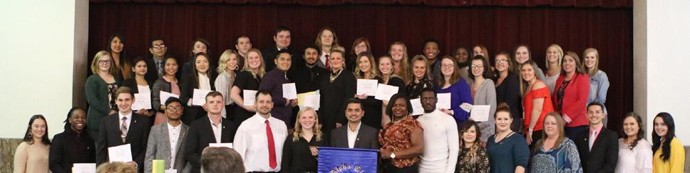Inductions were held for ECU’s Oklahoma Gamma Chapter of the Alpha Chi National Honor Society this past fall. Alpha Chi is comprised of the top 10 percent of juniors and seniors at ECU. Students must have at least a 3.5 gradepoint average to join. The objective of Alpha Chi is to promote and recognize superior scholarship and those elements of character which make scholarship effective for service.