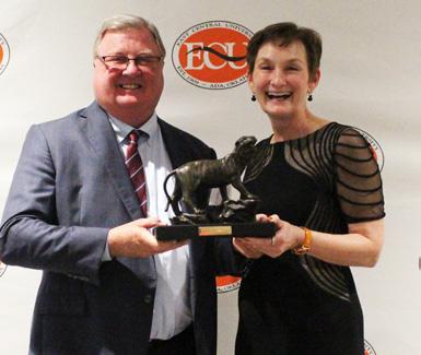 Alumni and friends of ECU gathered in Oklahoma City for “Thunder Up Night” at the Colcord Hotel on Feb. 7. The event featured special guest and Oklahoma State Auditor Cindy Byrd, a 1997 ECU alum, who spoke to the contingent about her job and some memories of her alma mater. The event led up to the Oklahoma City Thunder-Memphis Grizzlies NBA game in which the ECU Chorale performed the National Anthem prior to the game.