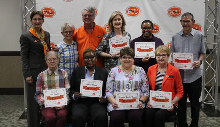 Ourpeopleareforwardthinkingandlookforways tosolveproblems.Dr. Andersonserved25years withdistinction,creating newprogramsandstarting successfulinitiatives.Jan LongorganizedECU’sfirst AgFesttohelpusunderstand howourfoodgetstous.John Sisco,likemanyveteranswith theirdisciplineandhonor, servesinmultiplerolesacross campus.Andourstudents generouslygiveoftheirtime andresourcestohelpthose whoareinneed.