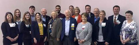 ECU’s Early Settlement Mediation staff members had their basic training in Shawnee, Oklahoma, at the Avedis Foundation. Pictured, from left, are Phil Johnson, (state director), Pattie Braun, Ann Borba, Sandra Johnson, Jennifer White, Ahndria Ablett, Rosemary Taylor (ECU student), Jorjia Cash (ECU director), Rain Rehbein (ECU student), Elaine Rhynes, and Judge Emily Mueller.
