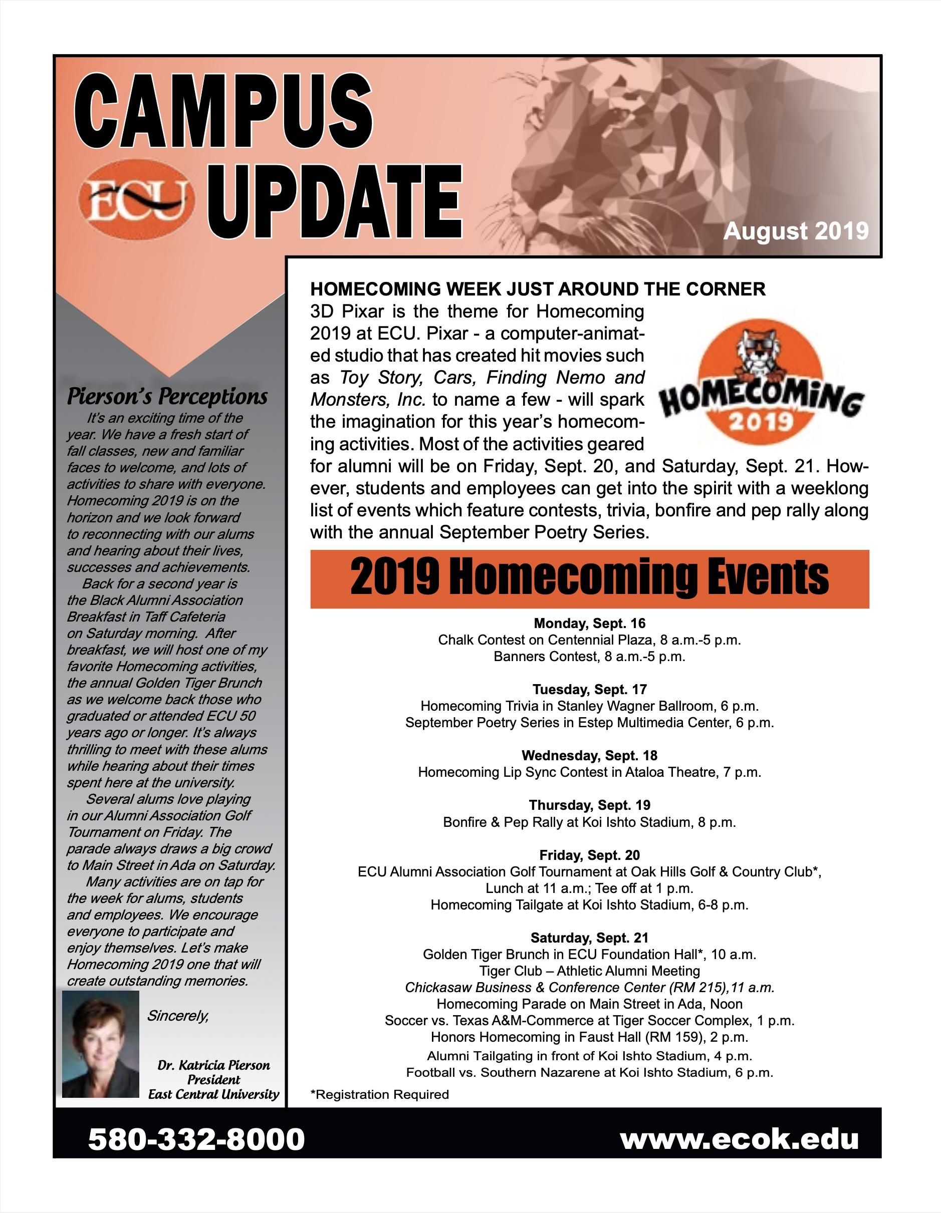 Weareexcitedwithwhatis happeningatEastCentral Universityandwanttoshareit withyoumorefrequently. We nowplantopublishmanyof oursuccessesmonthlyinour CampusUpdate.