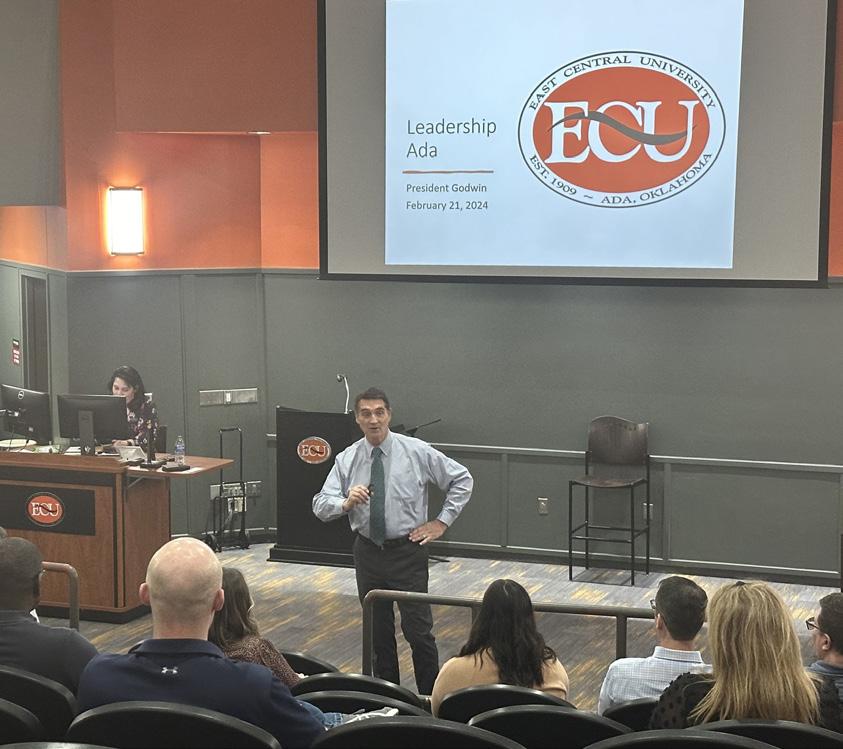 President Godwin welcomed the Oklahoma State Regents and Chancellor Allison Garrett when ECU hosted their state meeting on Jan. 31.
