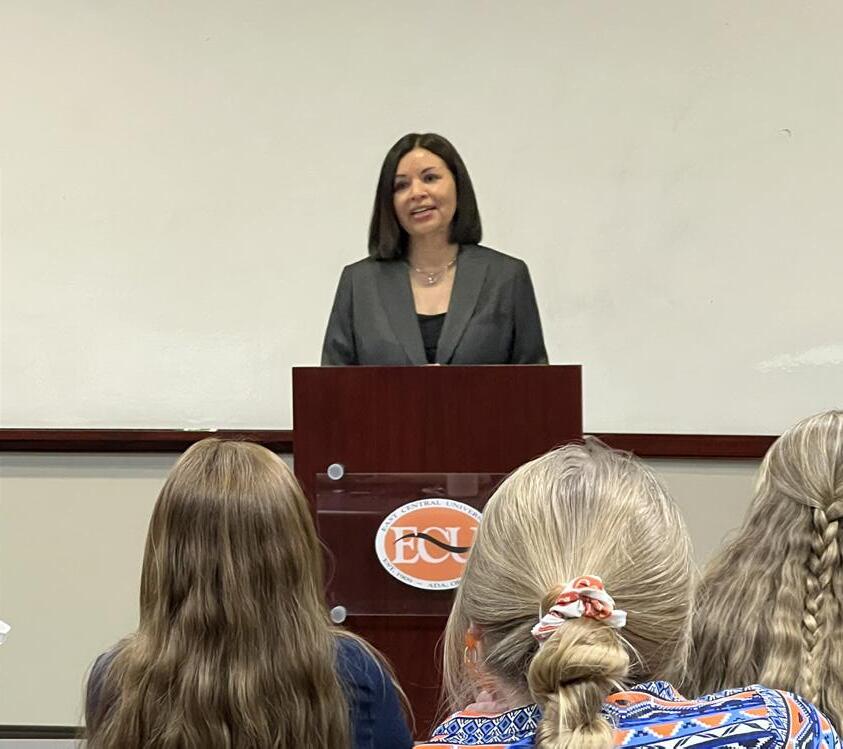 The 2024 Oklahoma Teacher of the Year, Rachel Keith, delivered the Annual Stokes Lecture , an event intended to honor ECU Alumni who are Teachers of the Year in the area and expose current students and area teachers to a wealth of information.