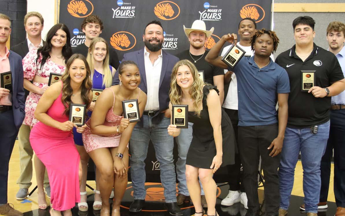 The esteemed class comprises of six outstanding individuals and one remarkable national championship team. Included in this group are Teresa Jones Ingram (Student-Athlete – Women's Basketball), Scott Linn (Distinguished Coach - Tennis), Robert Dudley (Distinguished Athletic Alumni - Baseball), Calvin Prince (Distinguished Athletic Alumni - Football), Mike and Karen Smith (Distinguished Service), and the 1993 National Championship Football Team. You can see the photos from the event at www.ecok.edu/athletic-hall-fame-banquet.