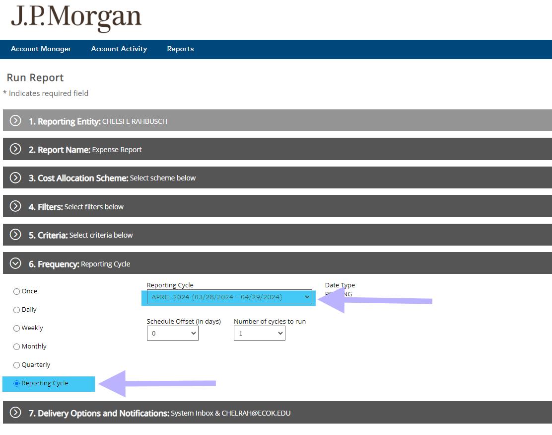 Select Option 6, Change to Reporting Cycle, Select the correct Reporting Cycle month