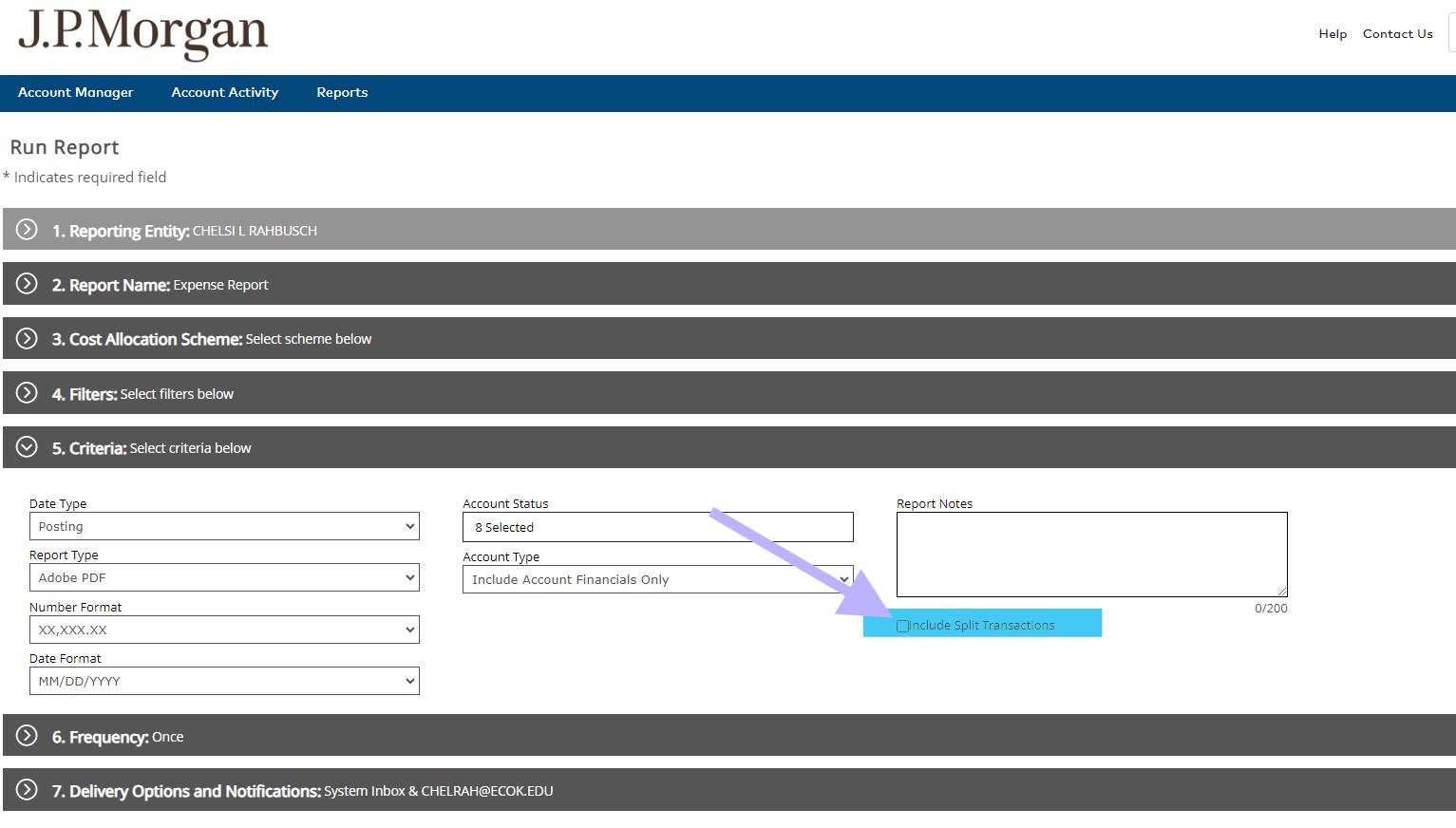 Select Include Split Transactions