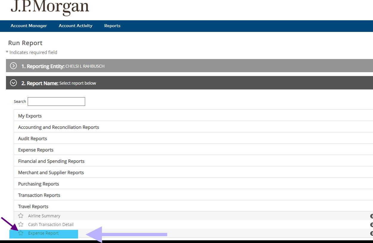 Select Expense Report, you can star this option for easier access