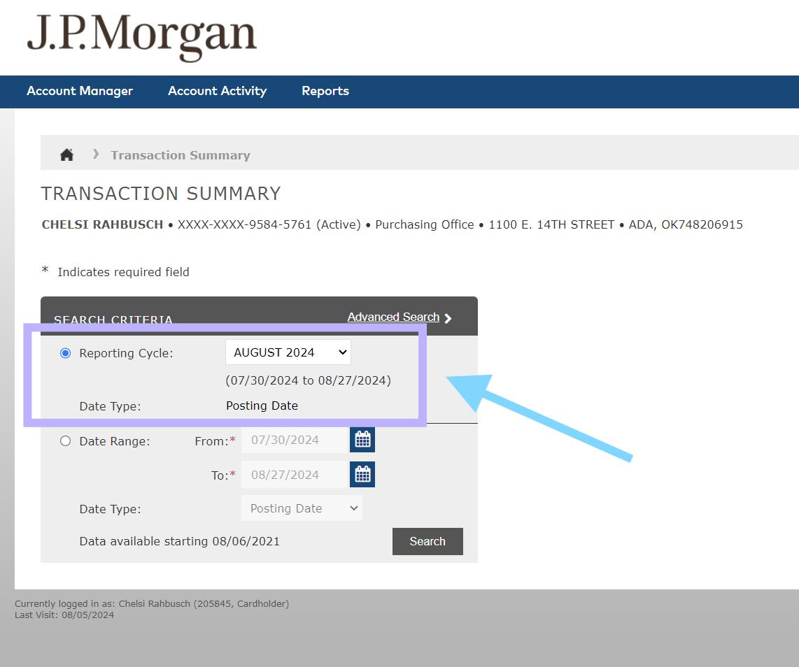 • Select Reporting Cycle
