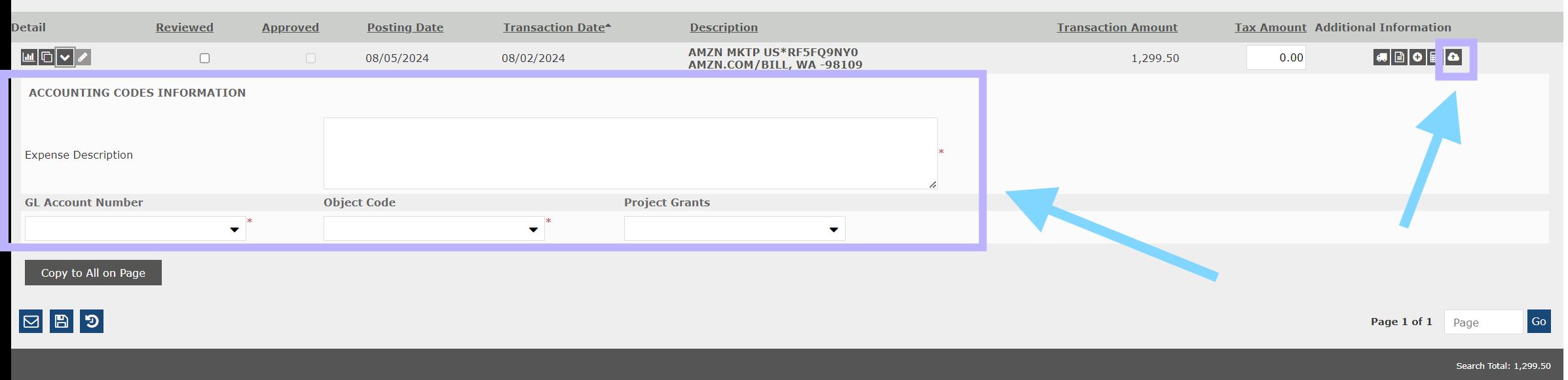 • Then upload your receipt(s) by clicking the Cloud icon (a close up of the cloud icon is on the next slide)