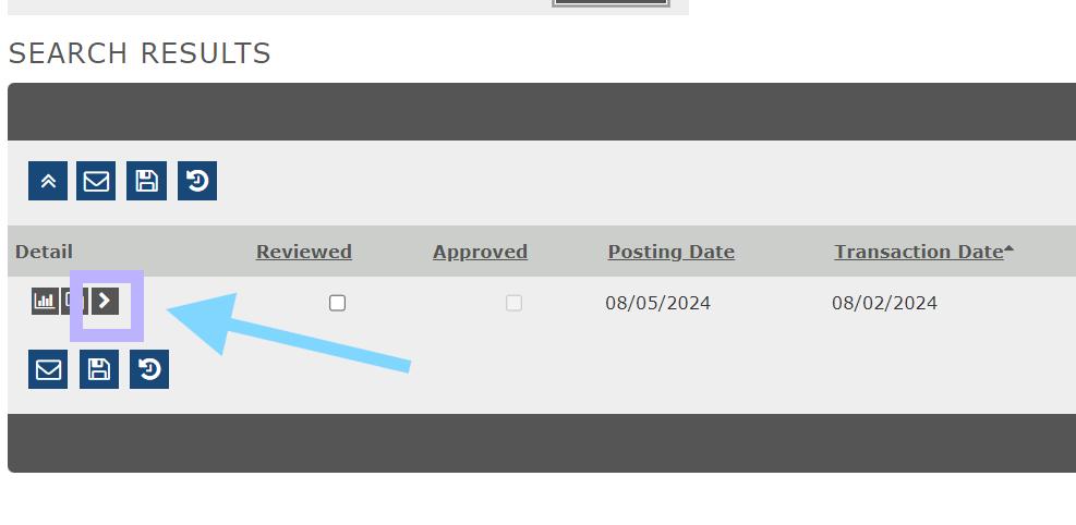 • In your search results select the arrow to expand the transaction