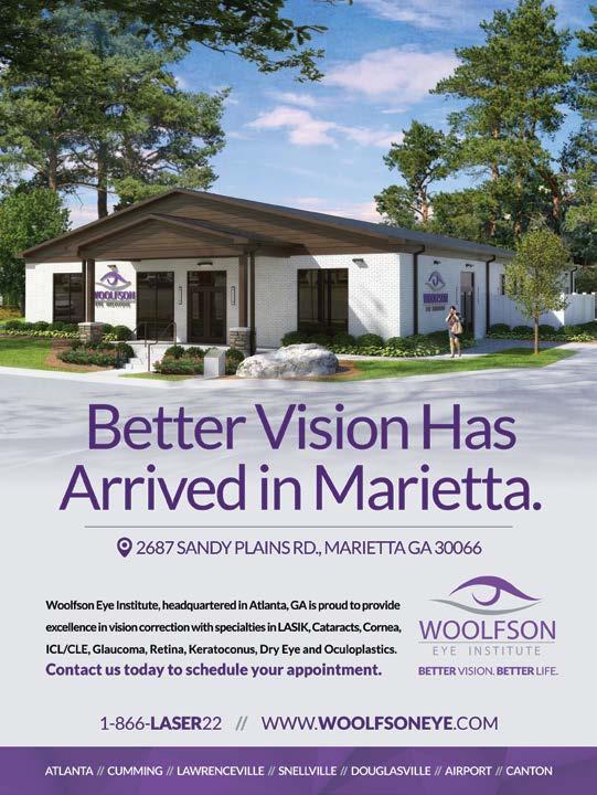 Woolfson Eye Institute’s East Cobb location is located at 2687 Sandy Plains Road near Sprayberry High School. For more information, you can read their story on page 6, call 1-866-LASER22 or visit woolfsoneye.com.