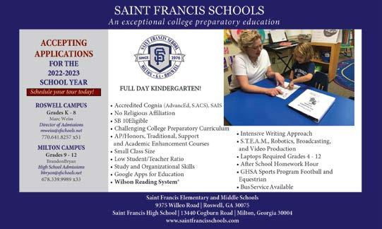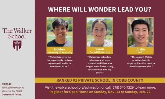 www.eastcobber.com2 November/December 2022 Publisher LAREN BROWN laren@eastcobber.com • 770-880-0965 Founder CYNTHIA ROZZO Graphic Designer: Tamara Stephens Digital Editor: Ashley Antonini Online Promotions: Tiffanie Abernethy www.eastcobber.com www.facebook.com/EastCobber www.twitter.com/eastcobber P.O. Box 680455 • Marietta, GA 30068 770-640-7070 • www.eastcobber.com Volume 29| Number 6 EAST COBBER of Georgia is published by EAST COBBER of Georgia, LLC. Copyright ©2022 by EAST COBBER of Georgia, LLC. All rights reserved. Reproduction or any use of editorial or pictorial content in any manner, without written permission, is prohibited. Any opinions expressed here do not necessarily represent the views of the EAST COBBER of Georgia. EAST COBBER of Georgia is a locally owned company that strives to build a sense of community and pride in East Cobb County by providing its residents with positive stories and timely information. The EAST COBBER of Georgia is distributed free to homes, schools, and 200+ retail locations in the following zip code areas: 30062, 30066, 30067, 30068 and 30075. Comments and stories are always welcome. Please address all correspondence to laren@eastcobber.com. Subscriptions are available for $20/year. Send check or money order payable to EAST COBBER of Georgia to the above address. THIS ISSUE Sign up at eastcobber.com Get a weekly rundown of local news, events and happenings sent straight to your email! Hey! EAST COBBER has an email newsletter! 8 FRIENDS FOR THE EAST COBB PARK 10 CHOOSING A PRIVATE SCHOOL 14 VETERANS CELEBRATED 18 COMMUNITY CALENDAR 22 HOLIDAY HAPPENINGS 34 HEALTH + WELLNESS 22