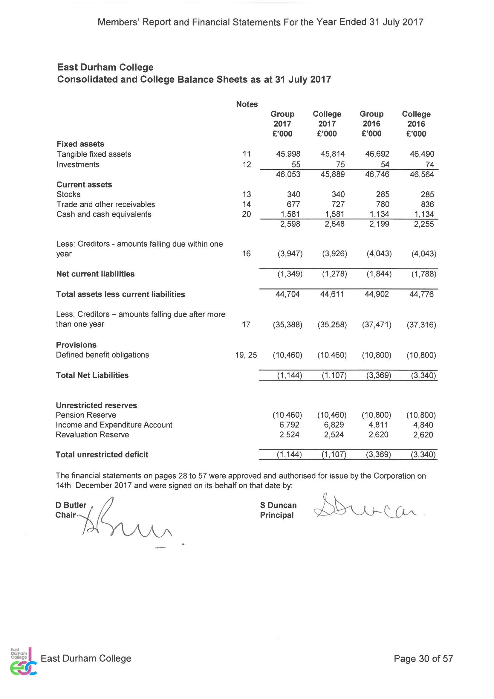 Members’ Report and Financial Statements For the Year Ended 31 July 2017 East Durham College Page 56 of 57