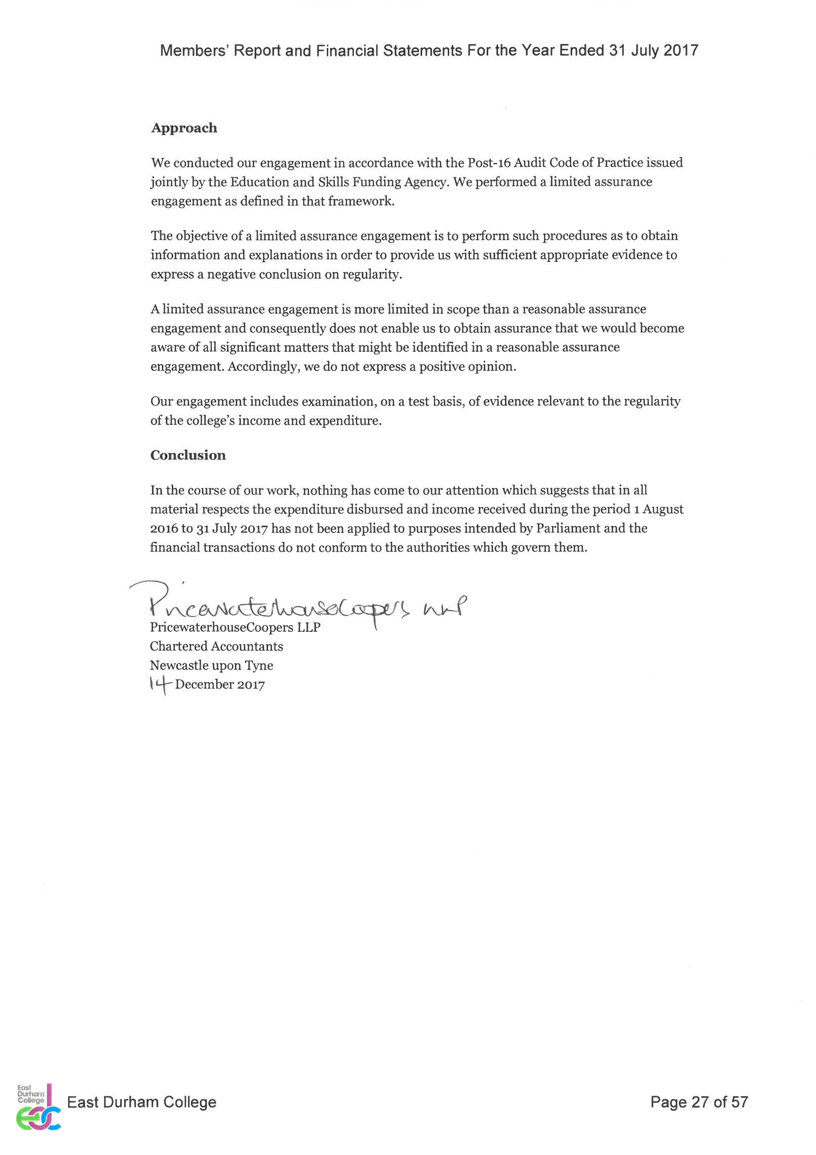 Statements For the Year Ended 31 July 2017 East Durham College Page 55 of 57