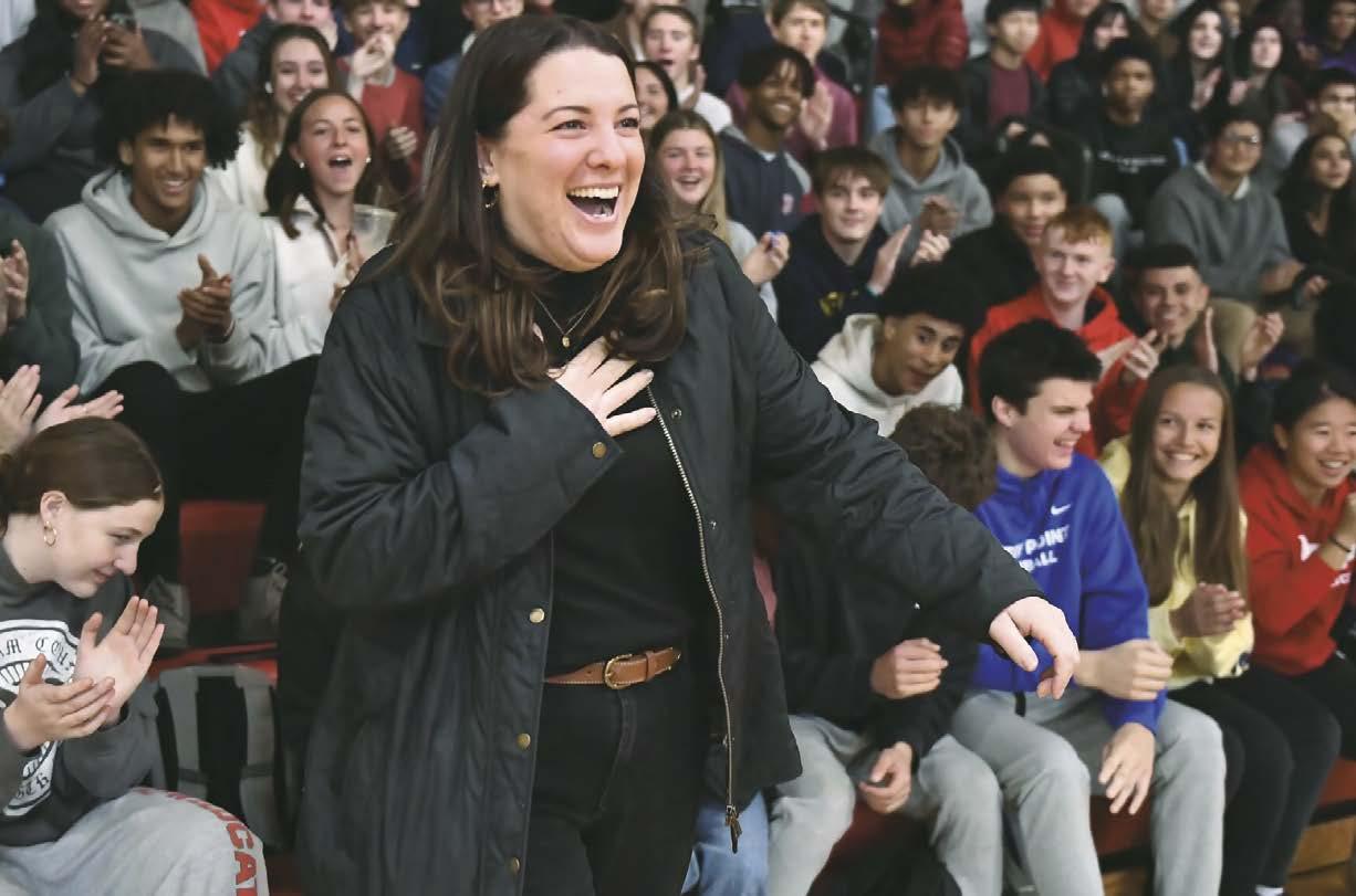 Jessica Chapman ’11, a history and social studies teacher at Norwich Free Academy (NFA), was recently honored with one of the nation’s top awards for educators — the Milken Educator Award (MEA). Surprised during a schoolwide assembly in fall 2024, Chapman was one of 45 educators across the country to be awarded the $25,000 cash prize.