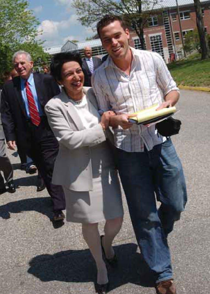 (above right) Dr. Nuñez visits with Robert Arpin ’06, a reporter for the Broadcaster newspaper.