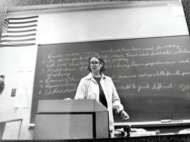 Photos: Heather in her office (left); Coy teaching in the late 1960s (top); Gladys teaching in the 1970s (bottom)