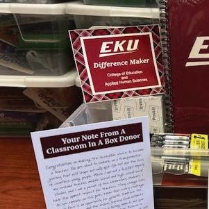 During the 2024-25 academic year, many EKU alumni and friends united in support of future educators by funding boxes of essential classroom materials for Eastern’s education graduates. The inaugural Classroom in a Box campaign was established to empower and equip new teachers as they prepared to enter their first classrooms.