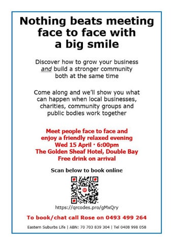 EASTERN SUBURBS LIFE IS A DIGITAL AND HARD COPY COMMUNITY PAPER THAT IS DISTRIBUTED BETWEEN SYDNEY HARBOUR AND BOTANY BAY WE ARE ONE OF THE FEW REMAINING TABLOID SIZE HARD COPY PAPERS WE ARE NOW BUILDING LOCAL COMMUNITY DIRECTORIES TO HELP BRING PEOPLE TOGETHER - PLEASE SEE LINK ABOVE WE CAN NOW HELP YOU BUILD A COMMUNITY OF YOUR OWN - CALL ROSE ON 0493 499 264 Regards - All at Eastern Suburbs Life