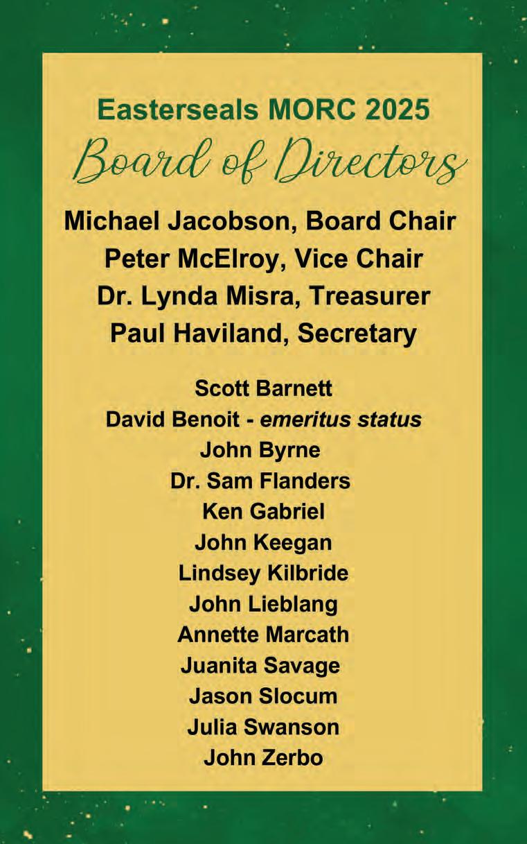 Tonight, we welcome you into the wonderful world of abilities as we showcase our new Comprehensive Autism Care Center. You will hear about the transformational model of care the new center will provide and the tremendous impact it will have for individuals with autism and their families for years to come. We will also present our Easterseals MORC Lifetime Achievement Award, honoring an individual whose life’s work helped to empower those with disabilities and made a significant impact on advancing the mission of Easterseals MORC.