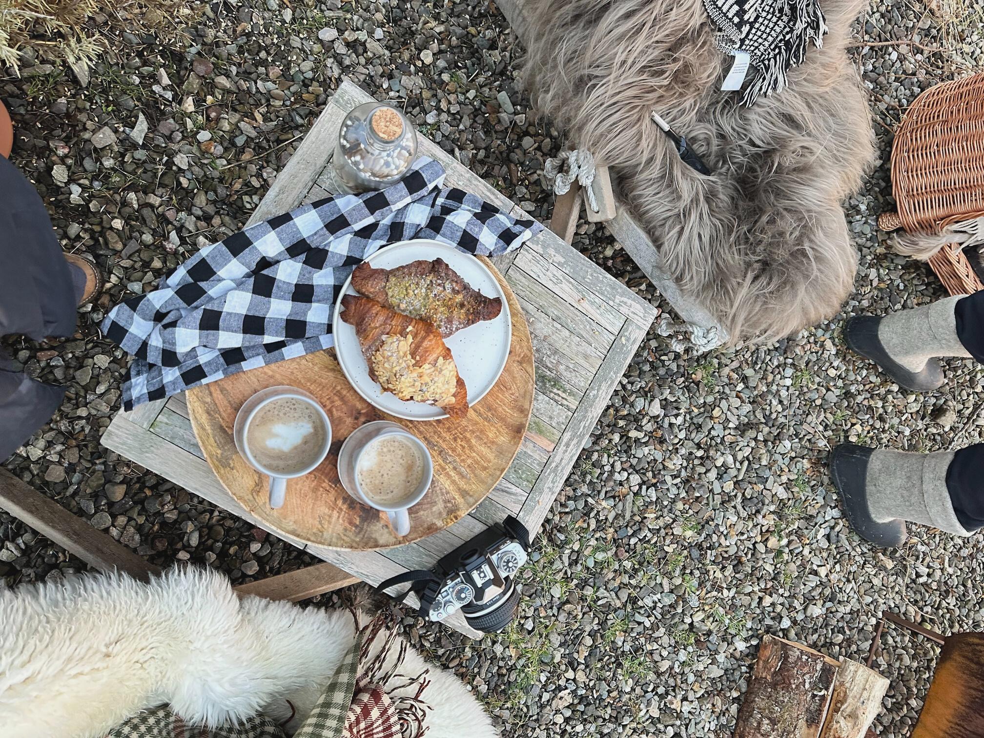 Spring sit outs, fire pits, coffee, croissants fleeces and blankets