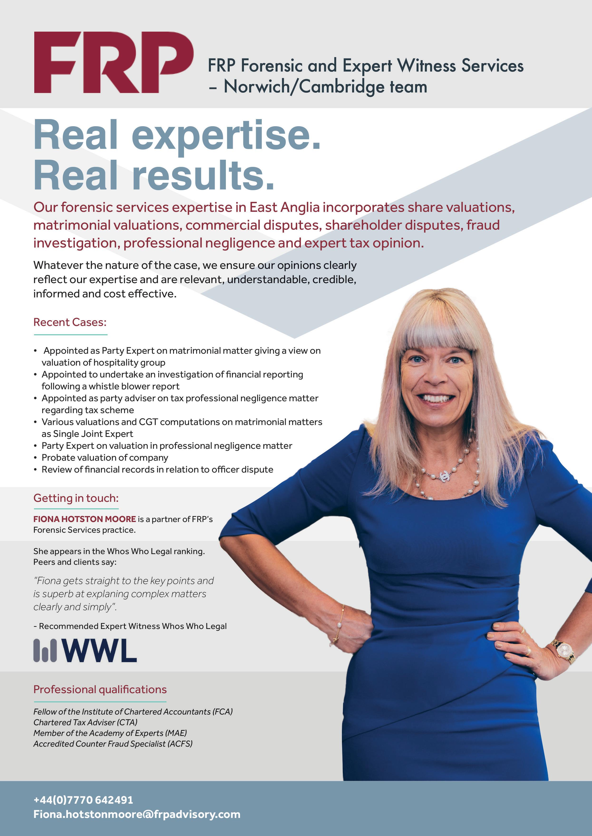 In this recent case, Fiona Hotston Moore of FRP Forensic Services advised a family over a lengthy dispute regarding the ownership of several properties and a number of businesses, with the matter settling out of court.