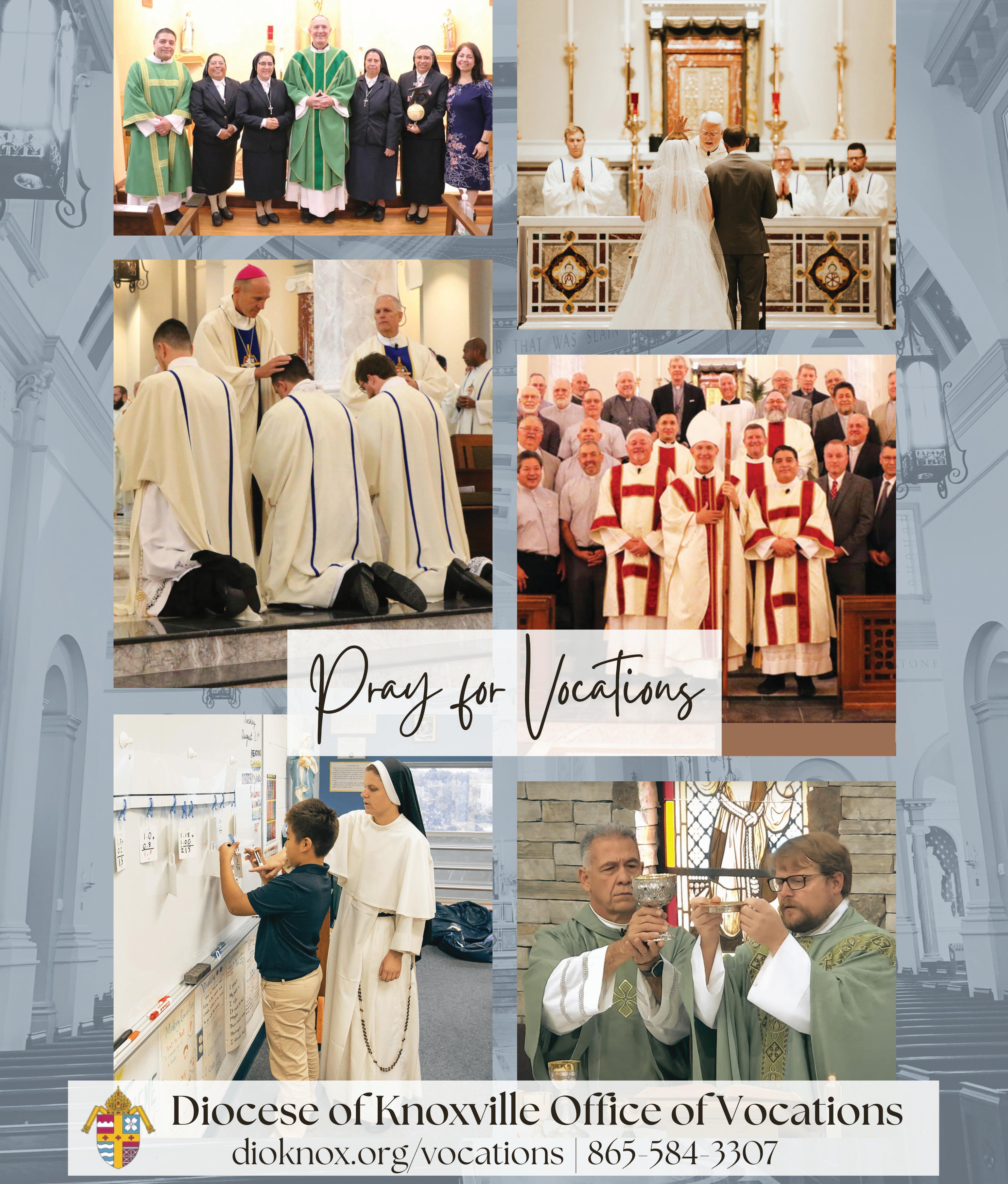In compliance with the Diocese of Knoxville’s Safe Environment Program, all affiliates require that volunteers and employees complete the requirements prior to working and/or volunteering in a parish, school, or through Catholic Charities of East Tennessee and/ or St. Mary’s Legacy Clinic Go to https:// dioknox.org/safeenvironment on the Diocese of Knoxville website for more information ■