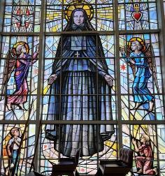 se encuentra un colorido vitral con la imagen de la