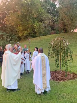 Rosario y bendición de árbol Por iniciativa de Patty Ramírez, un grupo de oración de Johnson City asistió al evento, para rezar el Rosario por todos antes de la Misa. Tras la ceremonia, el Padre Tom, bendijo un árbol plantado en honor a los fallecidos. El encuentro finalizó con una cena, fortaleciendo los lazos de la comunidad.