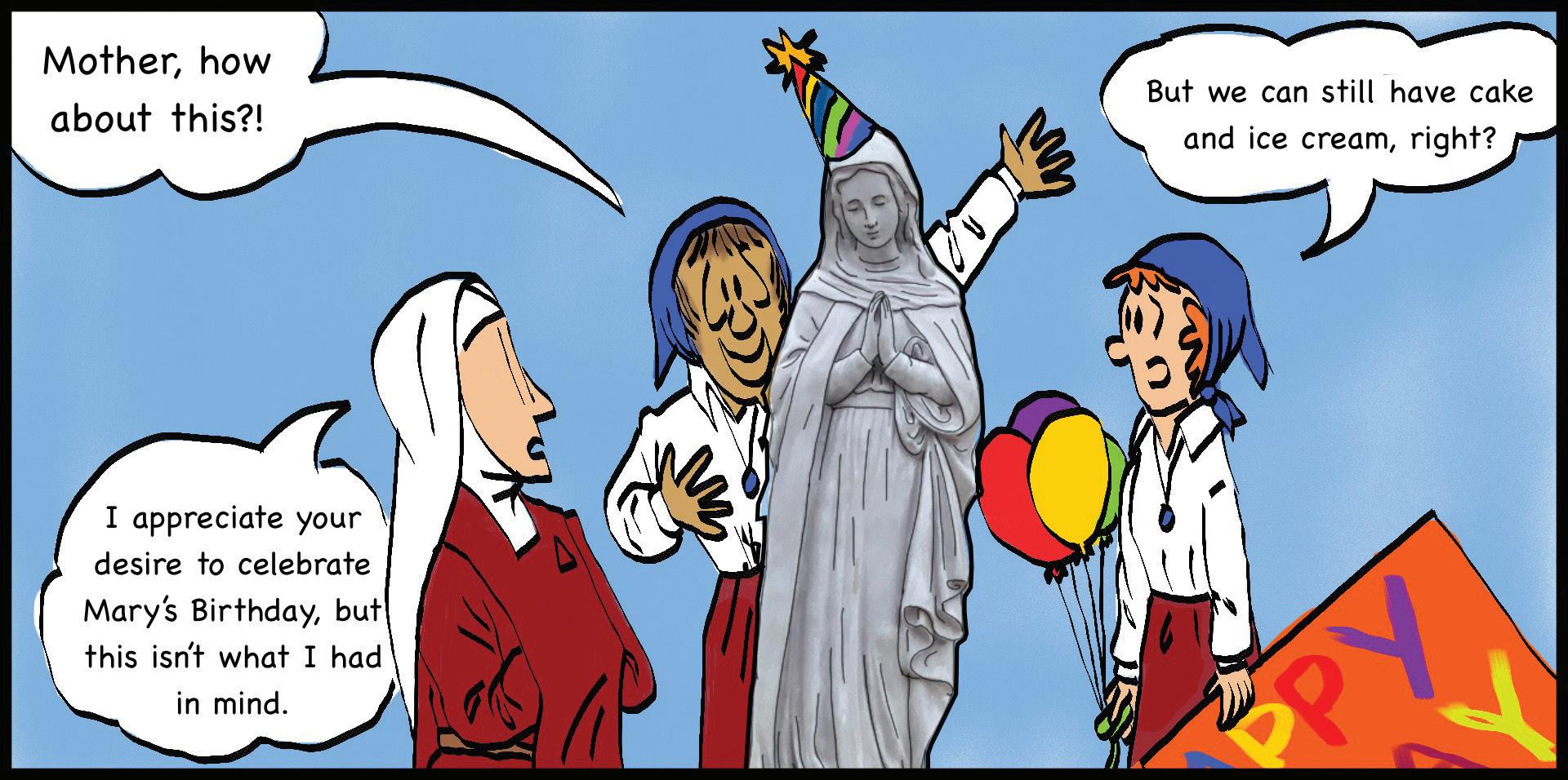 The Handmaids of the Precious Blood this year celebrate the 78th year since their founding in 1947; more than three-quarters of a century of prayer and sacrifice for priests. To receive weekly cartoons and short reflections and news from the Handmaids of the Precious Blood, visit their website, nunsforpriests.org, and sign up for the FIAT newsletter.