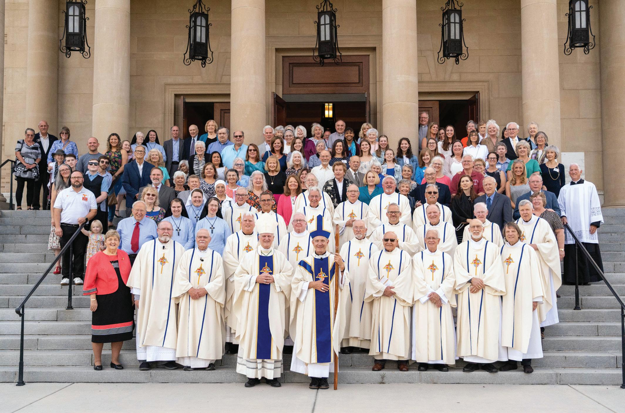 Fathers Diocese of Knoxville priests, deacons, and Chancery staff, some of whom helped establish the Diocese of Knoxville in 1988, gather for a group photo along with diocesan laity outside of the Cathedral of the Most Sacred Heart of Jesus following the Founders Mass on Aug. 31.