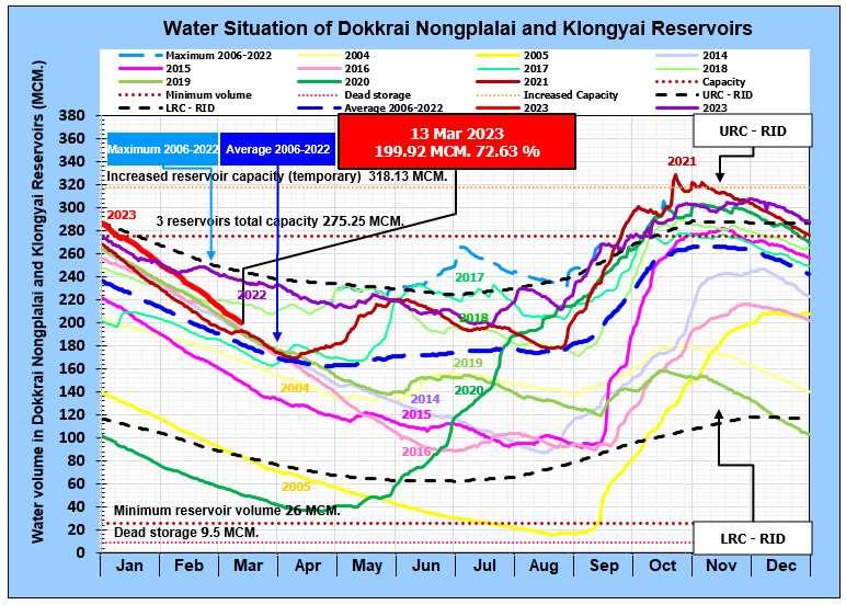 Water situation of Nongplalai, Dokkrai and Klongyai Reservoirs