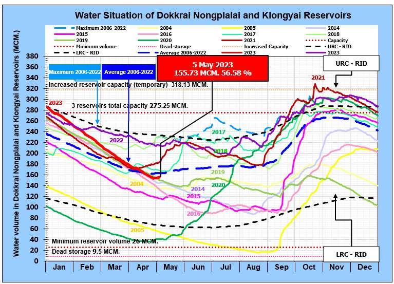 Water situation of Nongplalai, Dokkrai and Klongyai Reservoirs