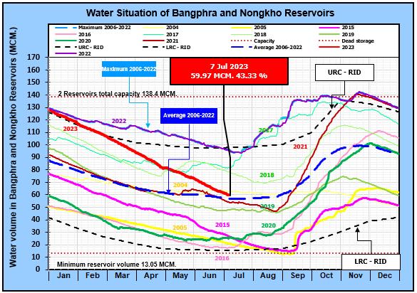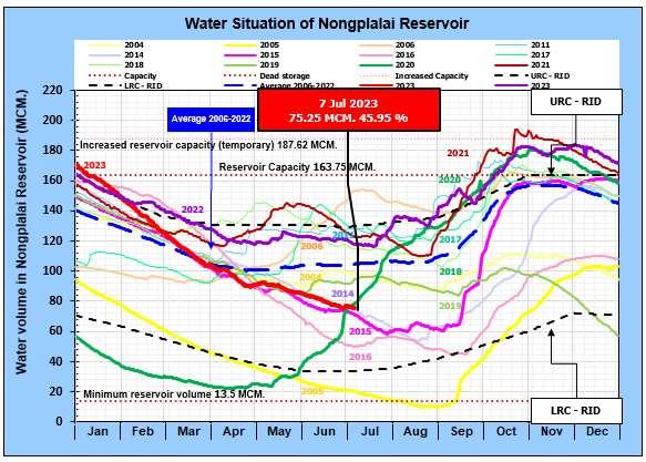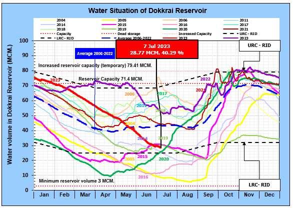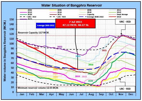 Ref: water situation from RID on 7 Jul 2023 Normal 50.01-80.00% Emergency 30.01-50.00% Critical <30.00%