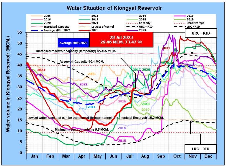 Water situation of Nongplalai, Dokkrai and Klongyai Reservoirs