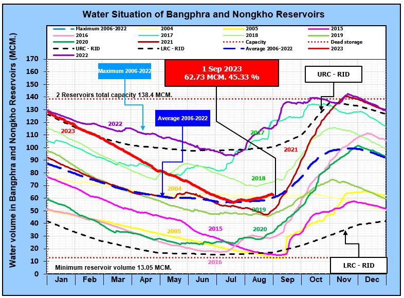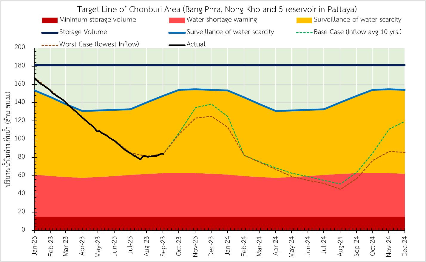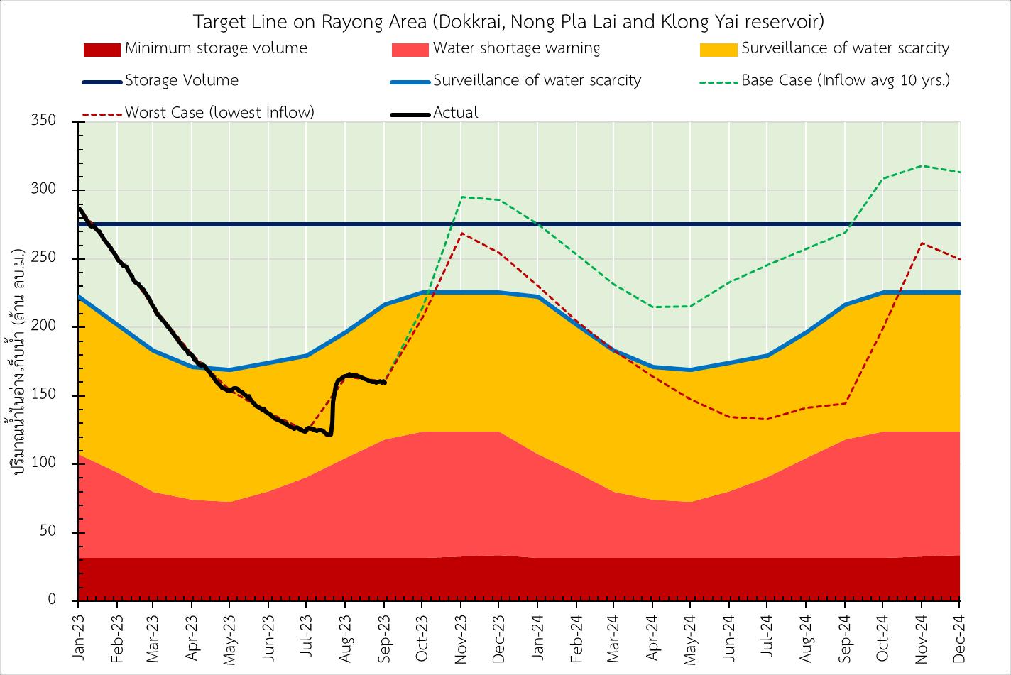 Summary of the water volume and mitigation measures in Rayong and Chonburi Provinces for 2023