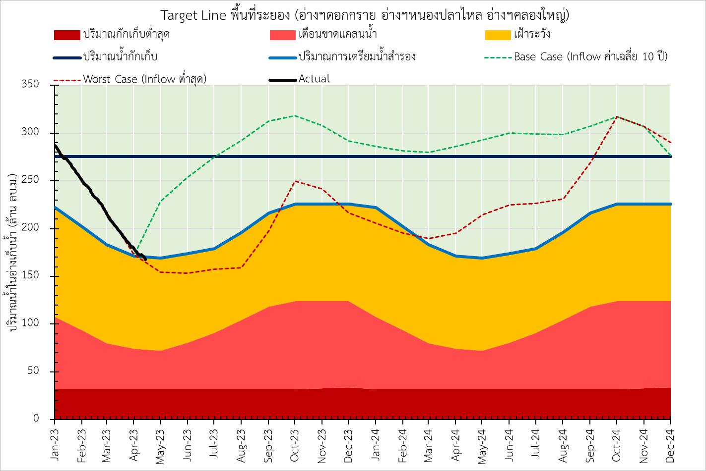 ้าในอ่างเก็บน้าพืนที่ชลบุรี วันที่ 14 เม.ย. 66 ปริมาณน้ารวม 2 อ่างชลบุรี และ 5 อ่างพัทยา 117.06 ล้าน ลบ.ม. 155 130 สภาวะปกติ All Clear) การเตรียมน้าส้ารอง • ผันน้าบางปะกง / คลองพระองค์ (ตามสถานการณ์น้า) • เพิ่มการผันน้าจากพืนที่ระยอง (ตามสถานการณ์น้า) เฝ้าระวัง เตือนขาดแคลนน้า