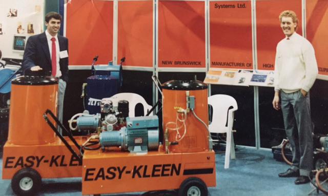 Easy-Kleen a connu un début bien modeste. Fred Howland, un vendeur né et entrepreneur, sentait la marque de nettoyeurs haute pression qu’il vendait dans les années 80 était inférieur à ce qu’il pouvait construire lui-même. Il croyait qu’il pouvait fournir à ses clients un équipement doté d’une très haute qualité, facile à utiliser et bien construite, étaient essentiels pour les deux parties soit ses clients et sa propre entreprise. En 1982, Fred a reçu son premier contrat de l’Armée Canadienne et a fabriqué la première laveuse à pression à eau froide Easy-Kleen à l’extérieur de sa maison à Kars, au Nouveau-Brunswick. L’entreprise a commencé à se développer et très vite, il avait dépassé le garage et les vaches ont été expulsées de l’étable pour faire de la place.