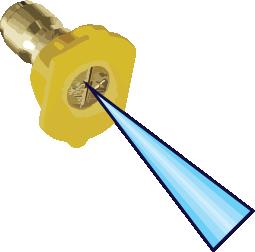 Rouge (buse de coupe) — 0° Utilisations —Un petit jet puissant et concentré pour le nettoyage des tâches de surfaces dures, non peintes ou les débris.