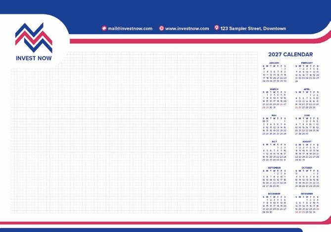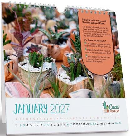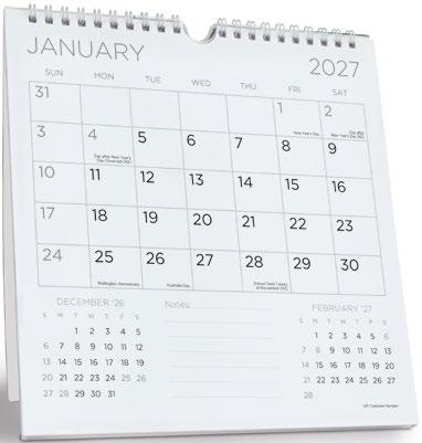 CALENDAR SIZE – 297mm x 210mm (closed) Add your pictures and advert to our date pad.