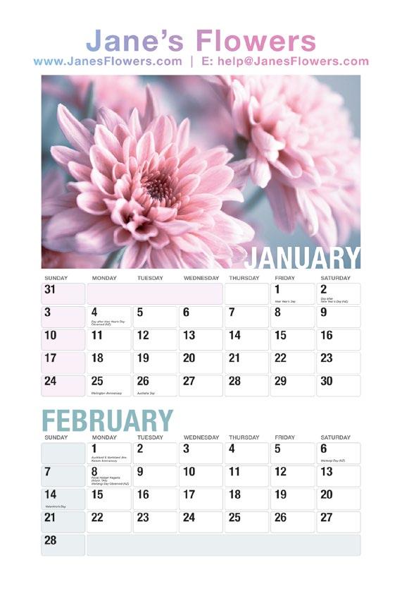 While we've tried to keep things simple by offering certain sizes within our Flexi Designs, the sky really is the limit. If you prefer a different binding or paper weight, wish to add a cover or extra page for a personalised message, or want to change the size completely, we can work with you to create your perfect calendar!