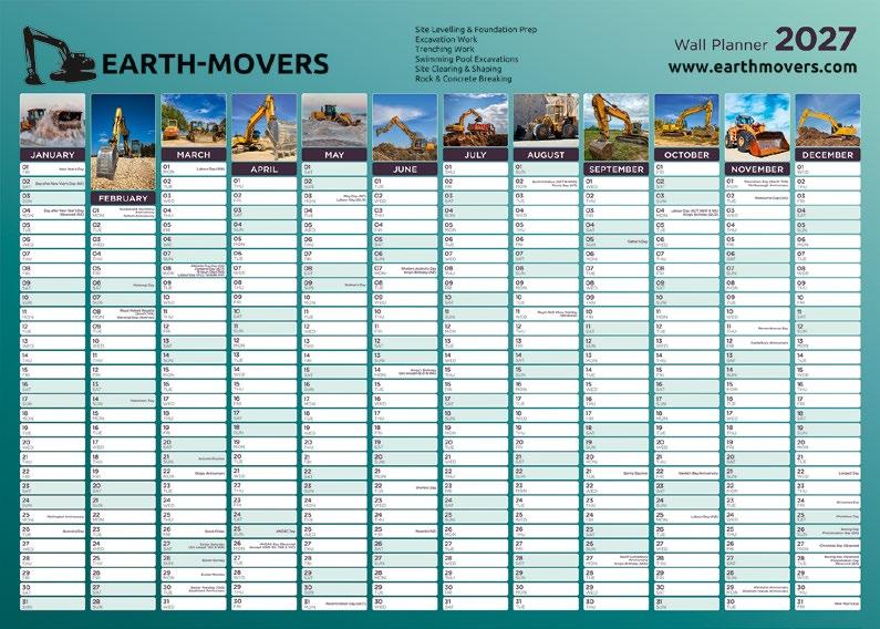 CALENDAR SIZE – 337mm x 870mm | FOLDED SIZE – 337mm x 220mm