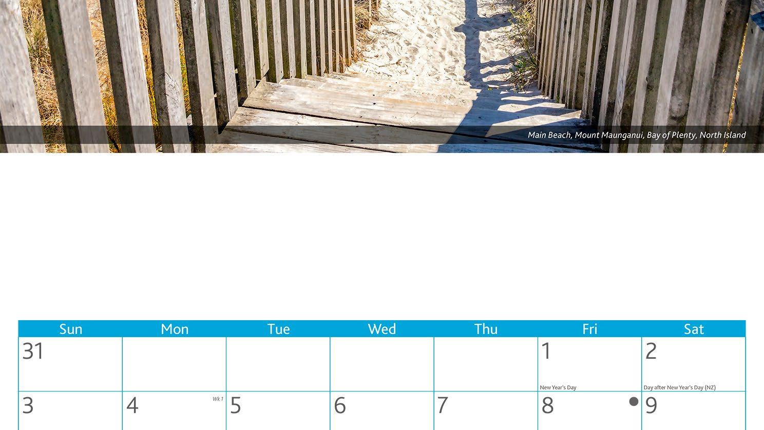 Take a walk through some of New Zealand’s most stunning and awe-inspiring landscapes. Beautiful photos are combined with large month blocks and generous space to jot notes and appointments.