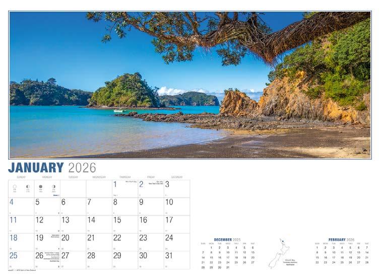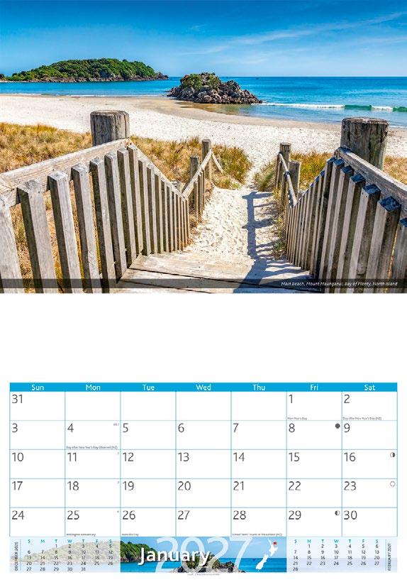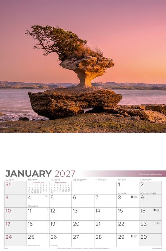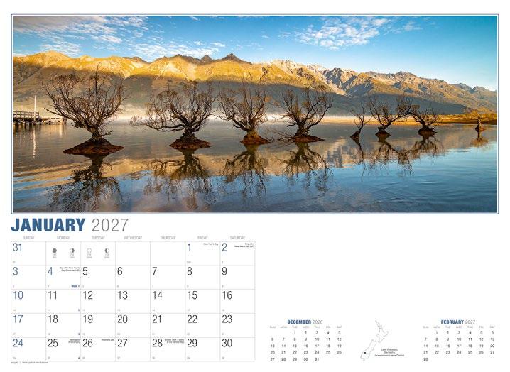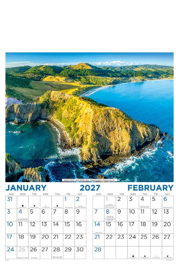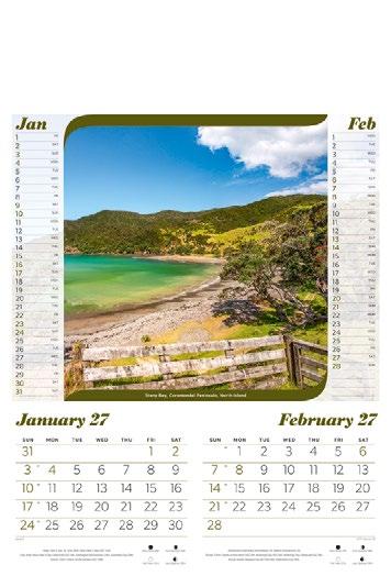 New Zealand is one of the most photogenic places in the world and this calendar depicts some of its most spectacular coastlines and mountain ranges.