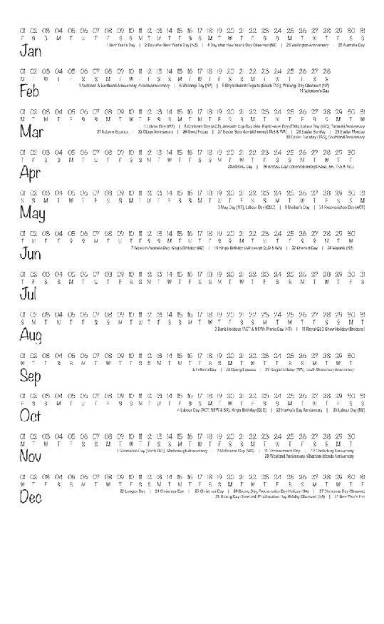 CALENDAR SIZE – 596mm x 435mm